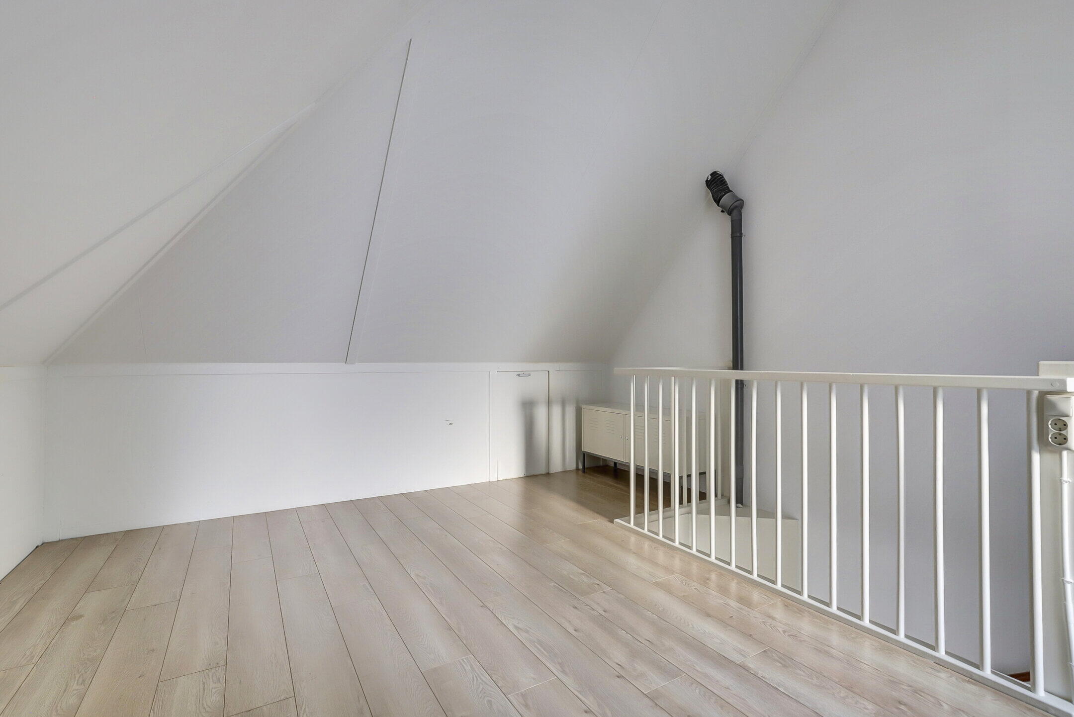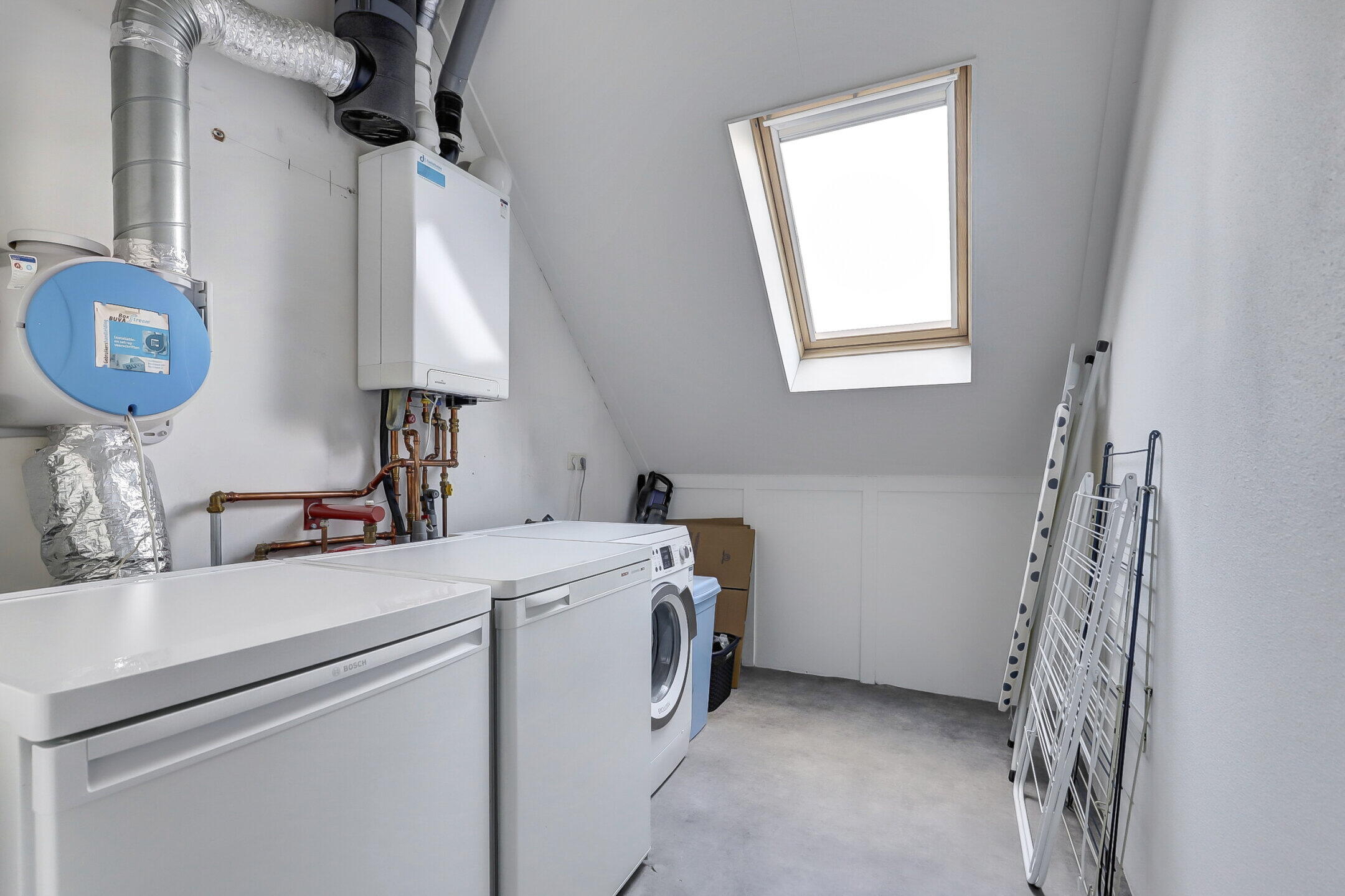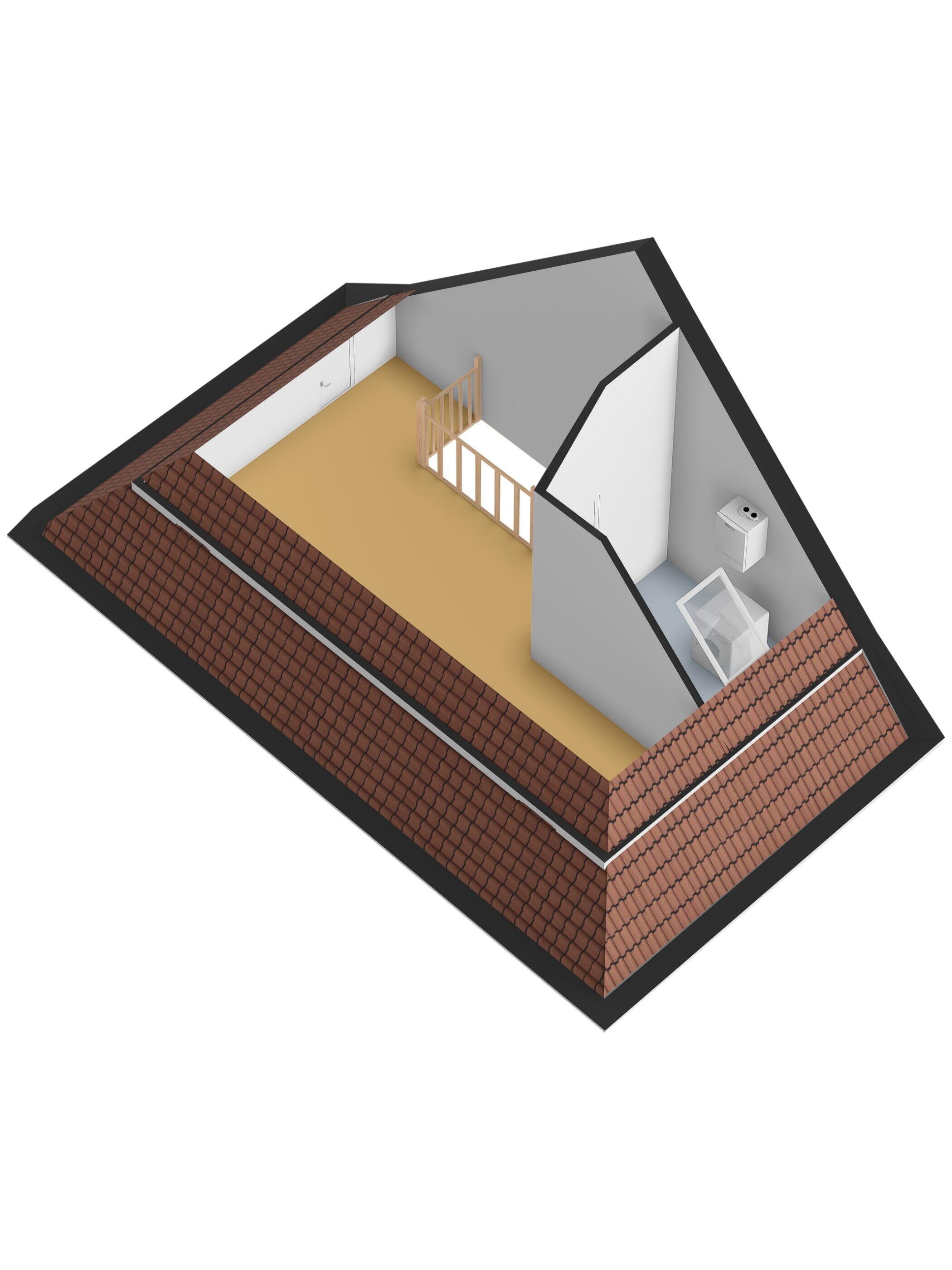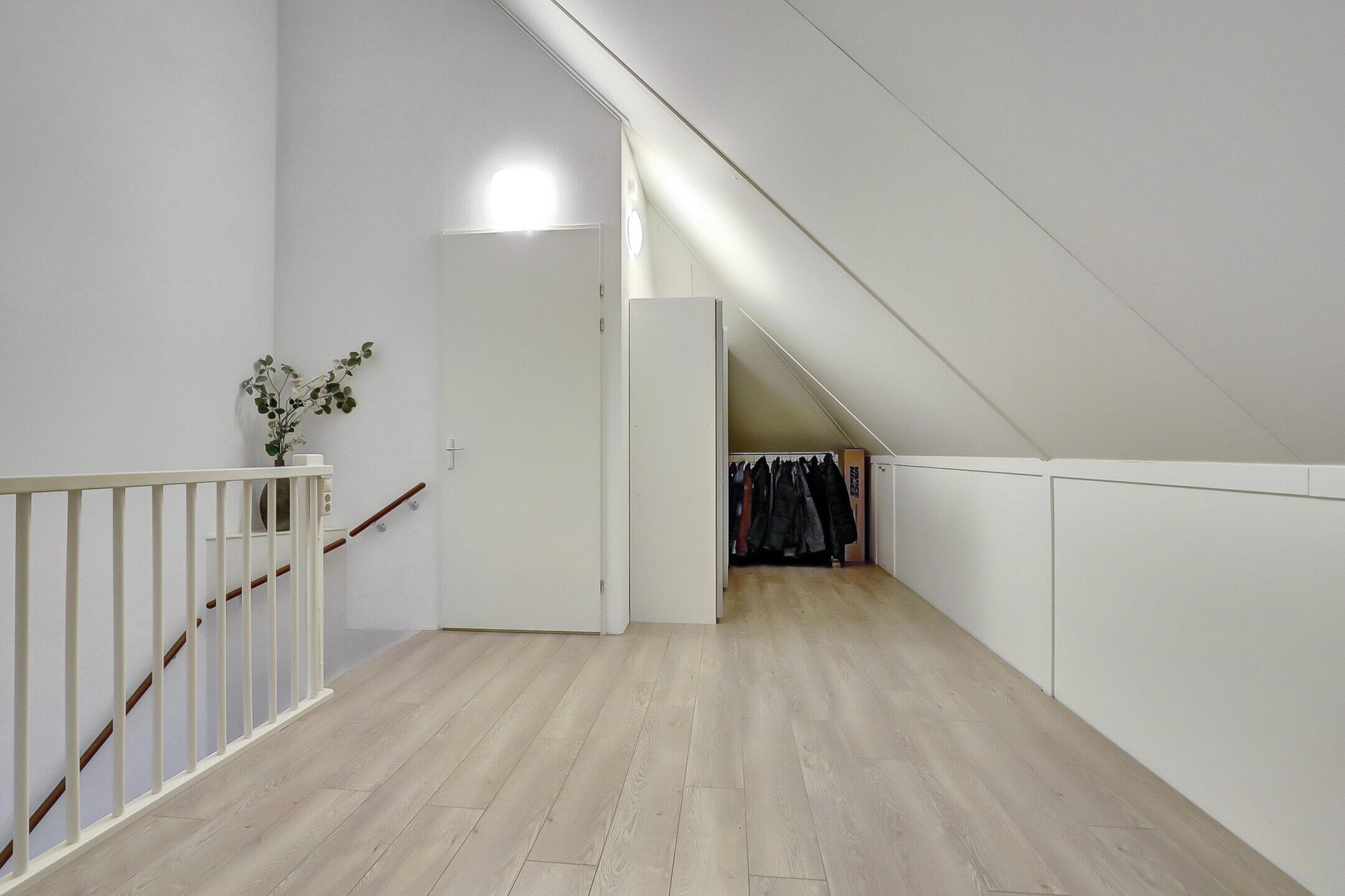 Zolderverdieping: ruime zolder met een hoge nok waar eenvoudig een vierde slaapkamer kan worden gerealiseerd. De zolder is nu ingedeeld met een open ruimte, ideaal als werkruimte of bergruimte. Daarnaast is er de technische ruimte waar de cv ketel (2018) hangt, de unit voor de mechanische ventilatie is geïnstalleerd en de wasmachine-aansluiting zit.