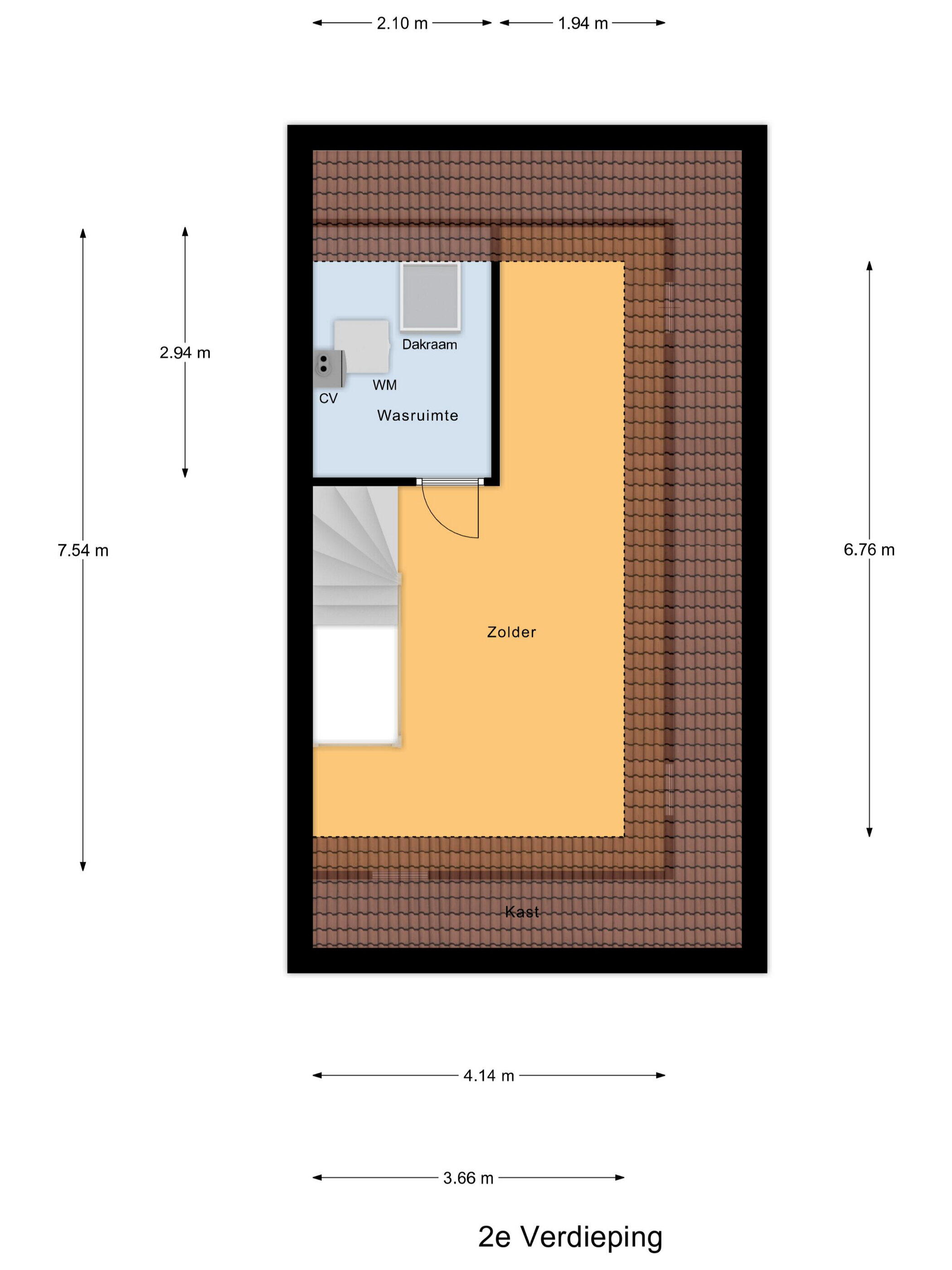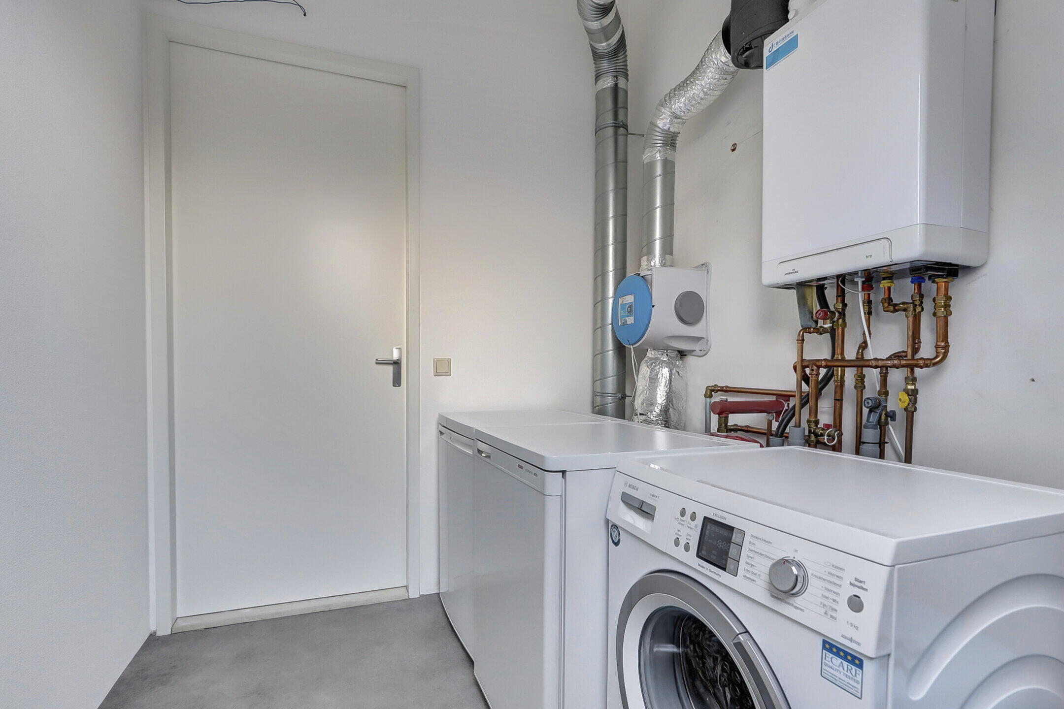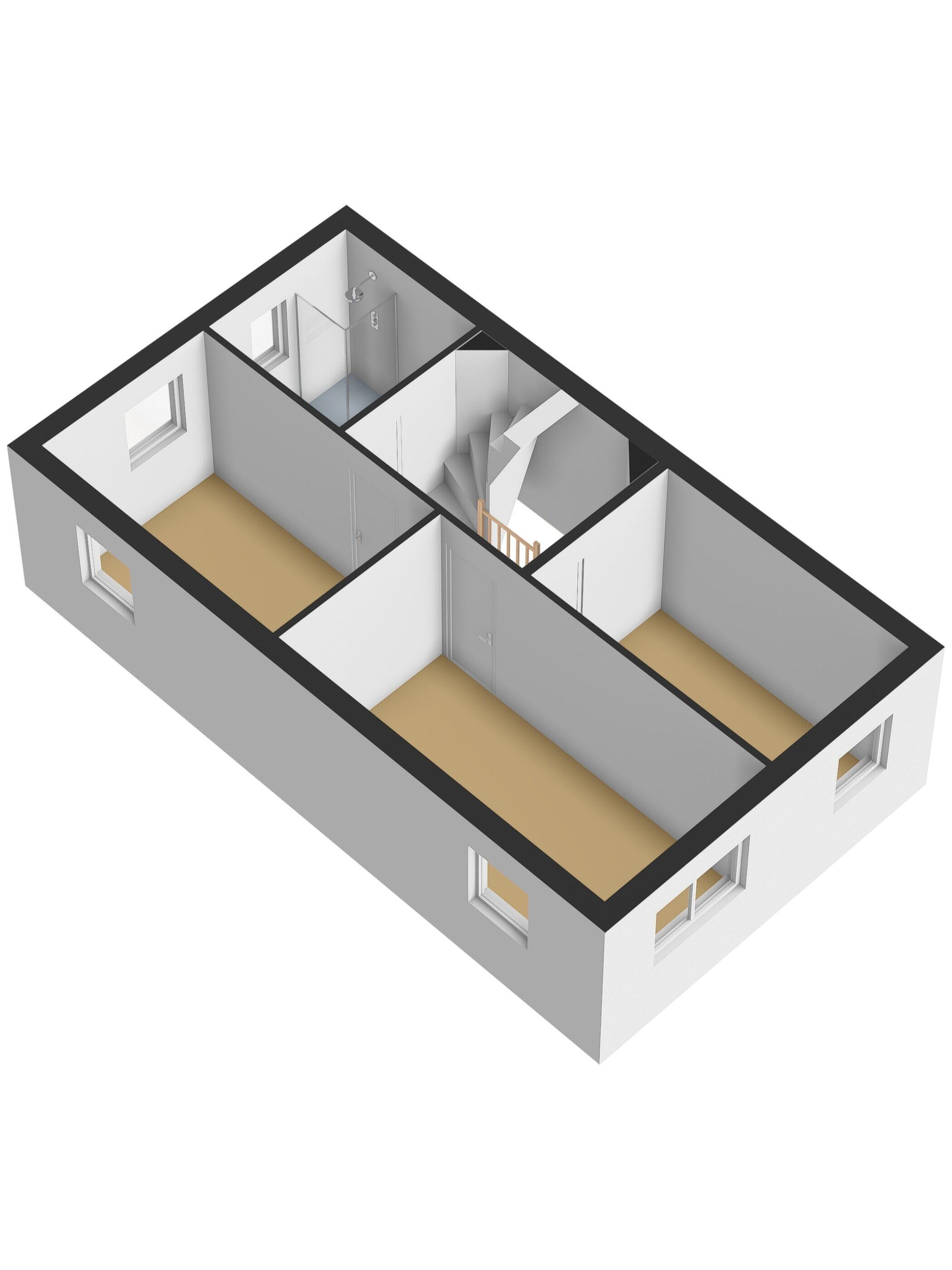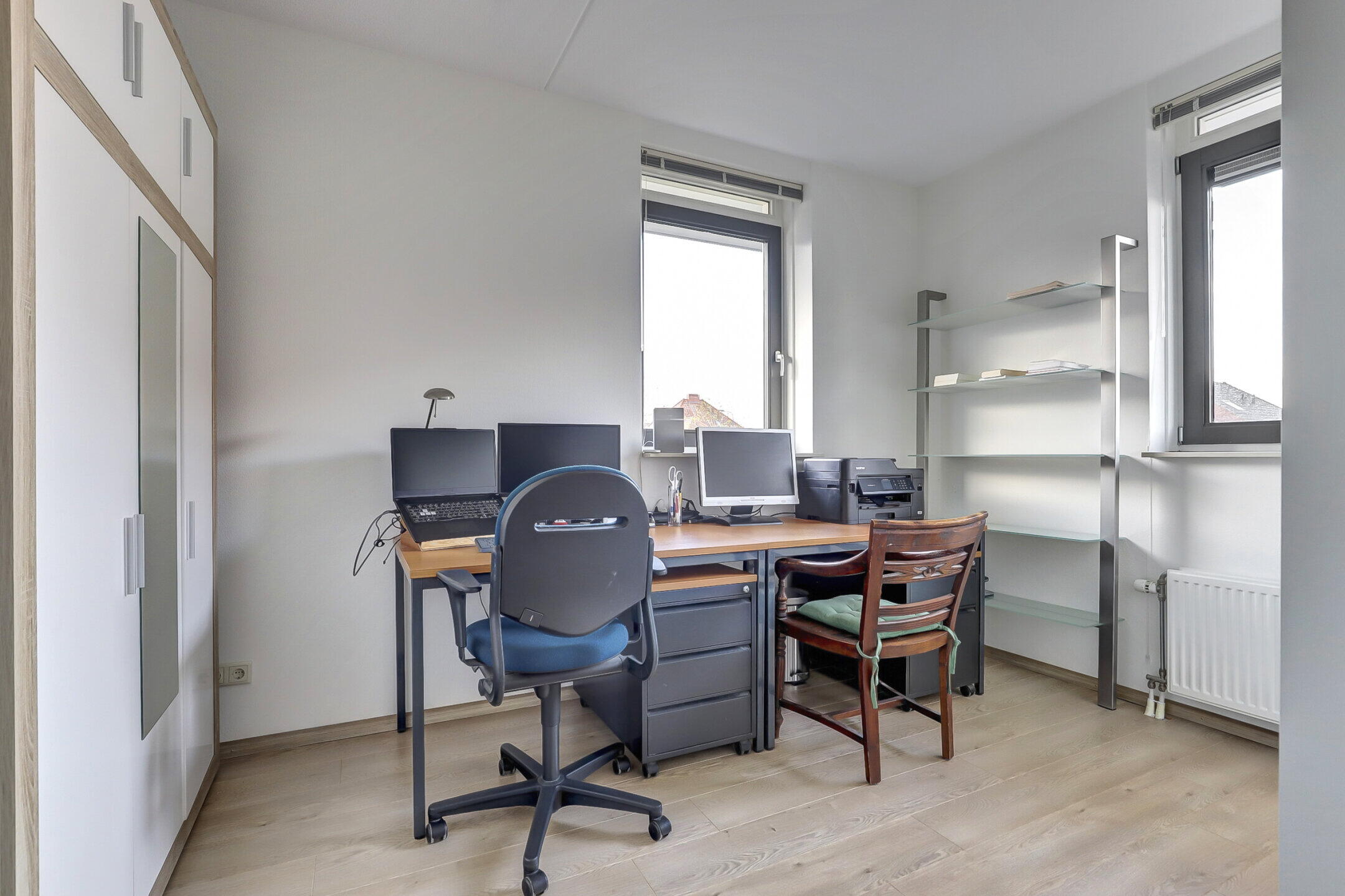 Zolderverdieping: ruime zolder met een hoge nok waar eenvoudig een vierde slaapkamer kan worden gerealiseerd. De zolder is nu ingedeeld met een open ruimte, ideaal als werkruimte of bergruimte. Daarnaast is er de technische ruimte waar de cv ketel (2018) hangt, de unit voor de mechanische ventilatie is geïnstalleerd en de wasmachine-aansluiting zit.