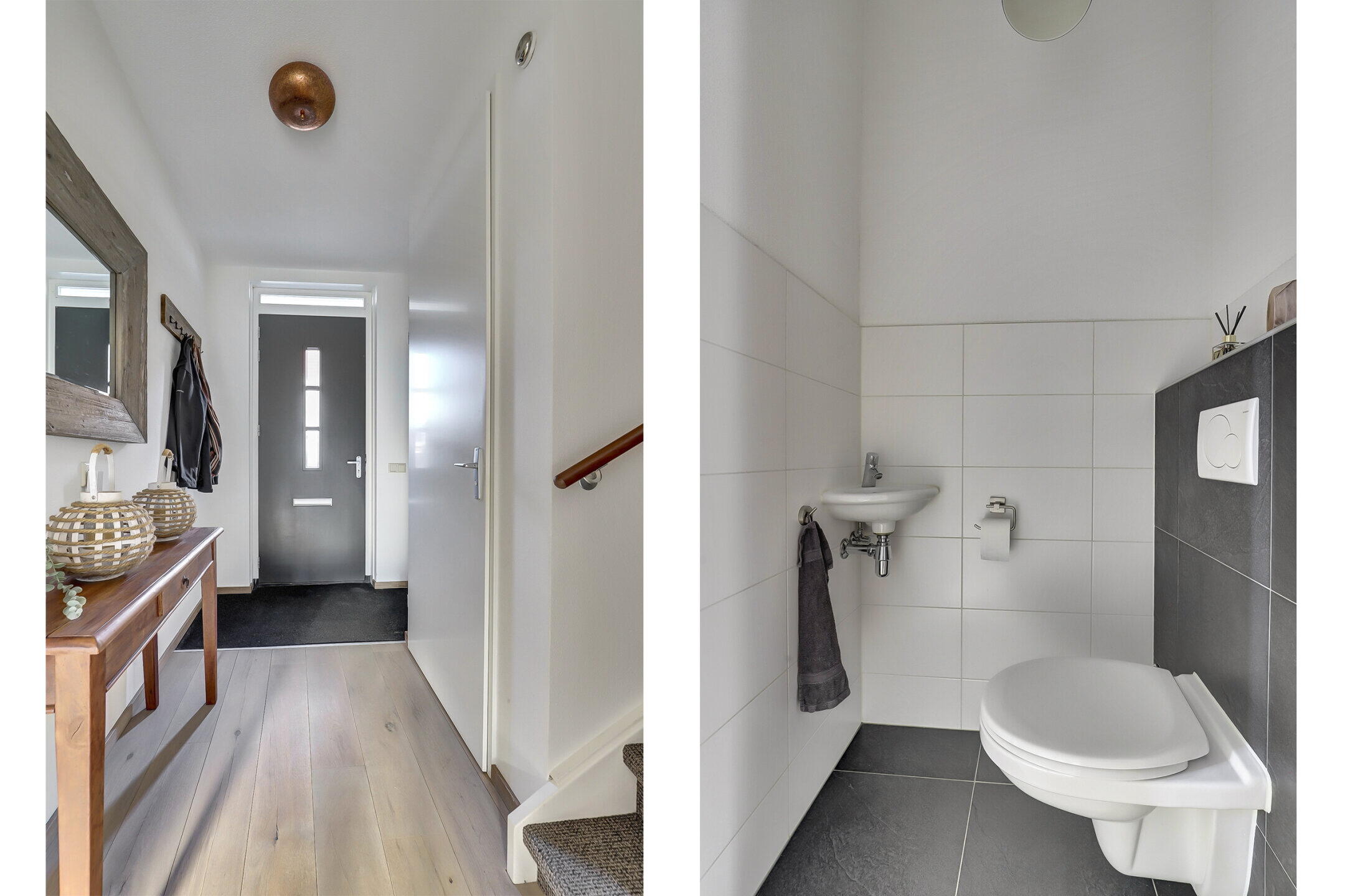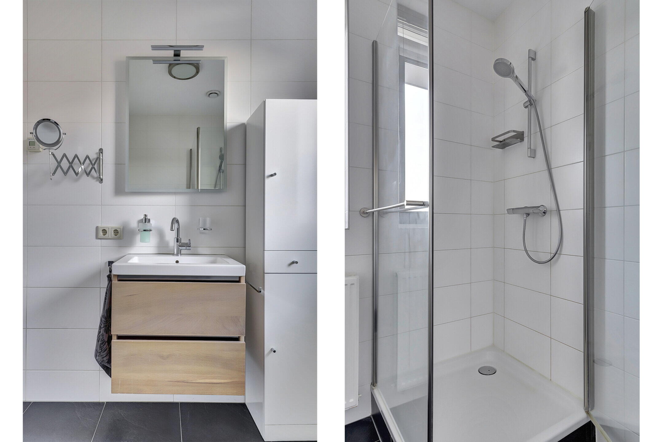 Eerste verdieping: overloop met toegang tot 3 mooie slaapkamers met prettig veel licht door de extra zijramen. De moderne badkamer is voorzien van douche, wandcloset en mooi wastafelmeubel.